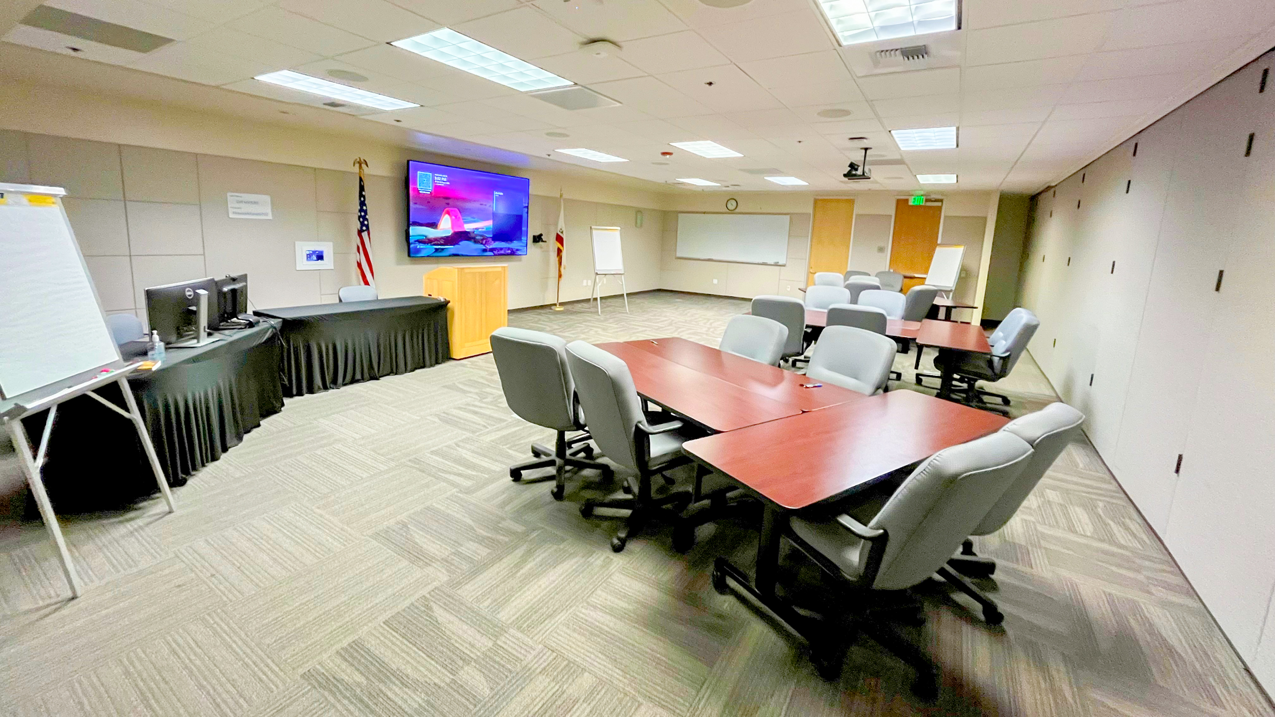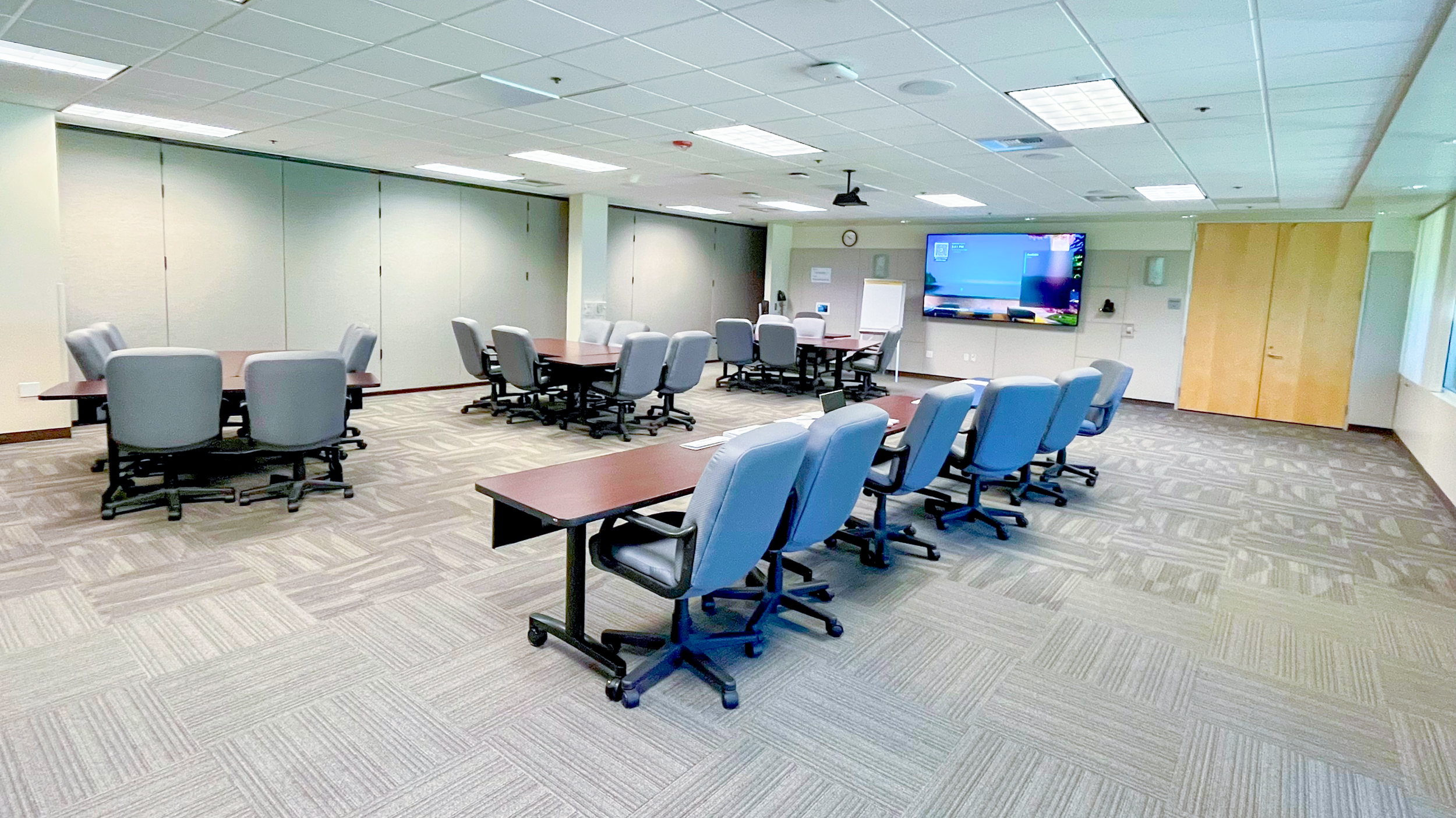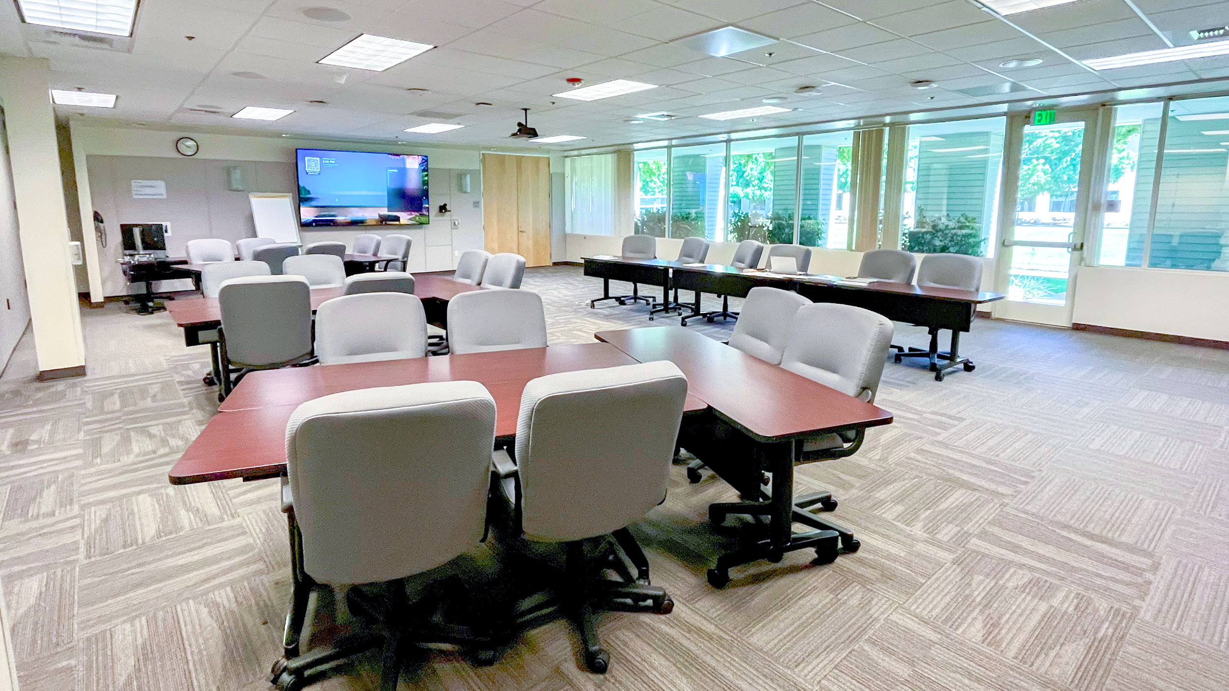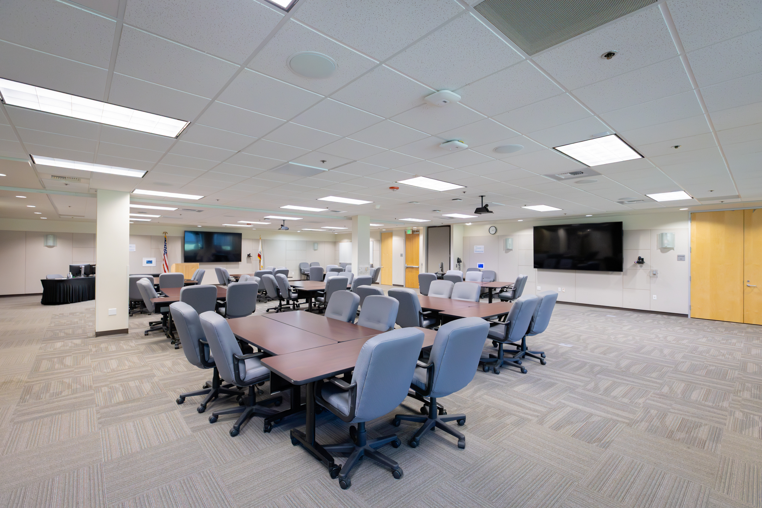 A training room seating a maximum of 24. This room comes equipped with an instructor PC and projector, providing a flexible and comfortable space for workshops, meetings, and instructor-led sessions.